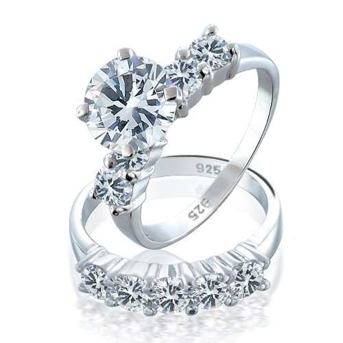 Bling Jewelry 925 Sterling Silver Round CZ Engagement Wedding Ring Set - Size 6 : Brief Specs