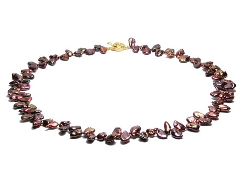 Entwining warm chocolate and rich golden hues work in perfect unison and offer the look you simply can't ignore. Unprecedented iridescence of these pearls brings out the authentic and feminine vibe and greatly complements your vintage boho-style finds. The size of the pearls is 9 to 15 mm.You will not be disappointed with Dee Dee - Chocolate Keshi Pearl Choker